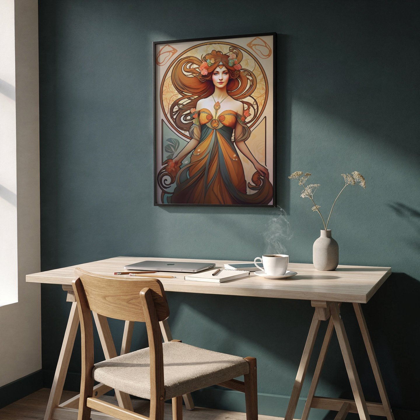 Dans un salon, une chambre ou un espace de travail, cette illustration devient une présence apaisante, à la fois décorative et inspirante.