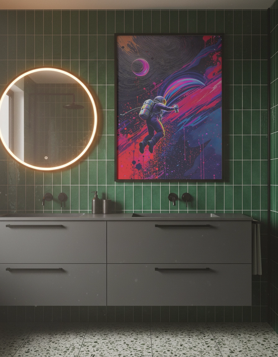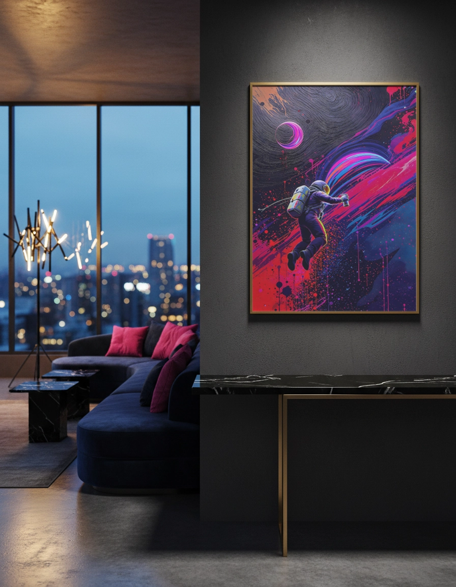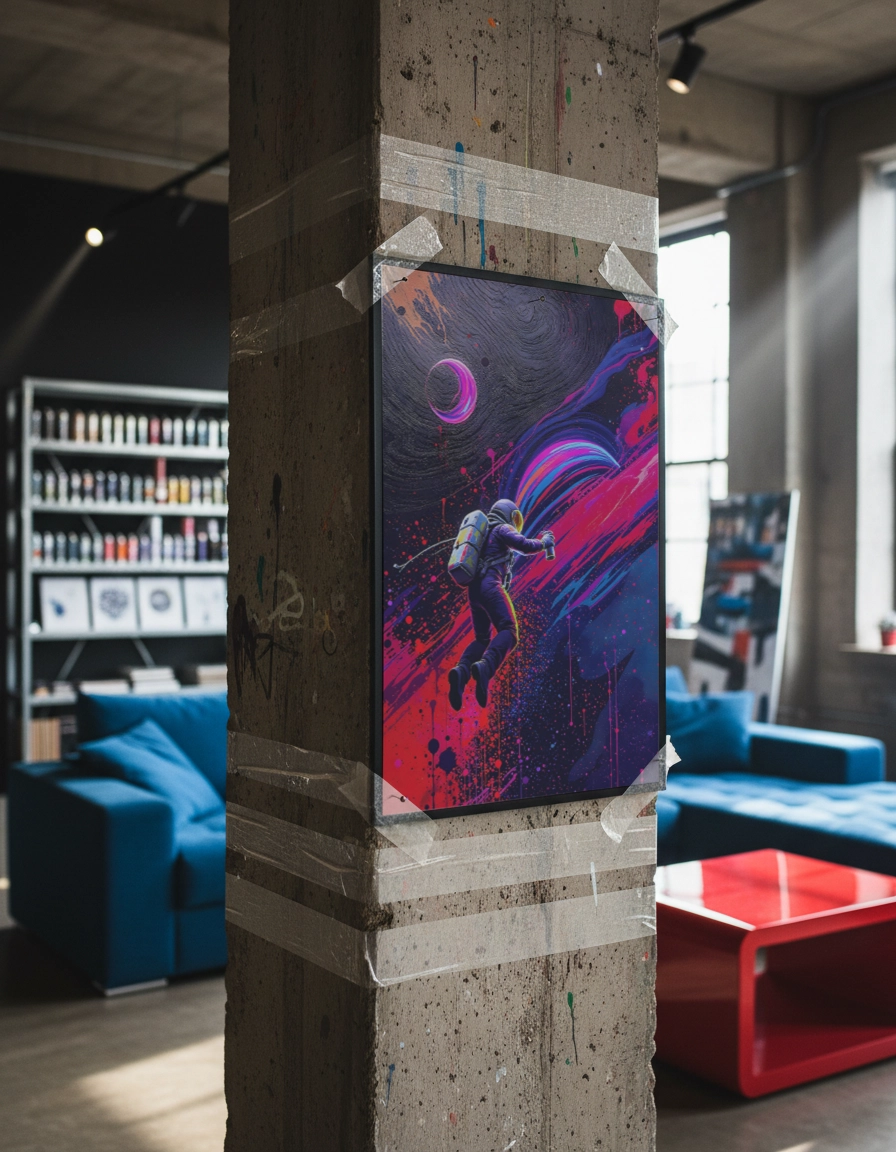 Son style graffiti street art aux couleurs intenses fonctionne parfaitement en grand format jusqu’au A0 pour un effet visuel immersif. Idéale pour affirmer une ambiance audacieuse et créative sans surcharger l’espace.