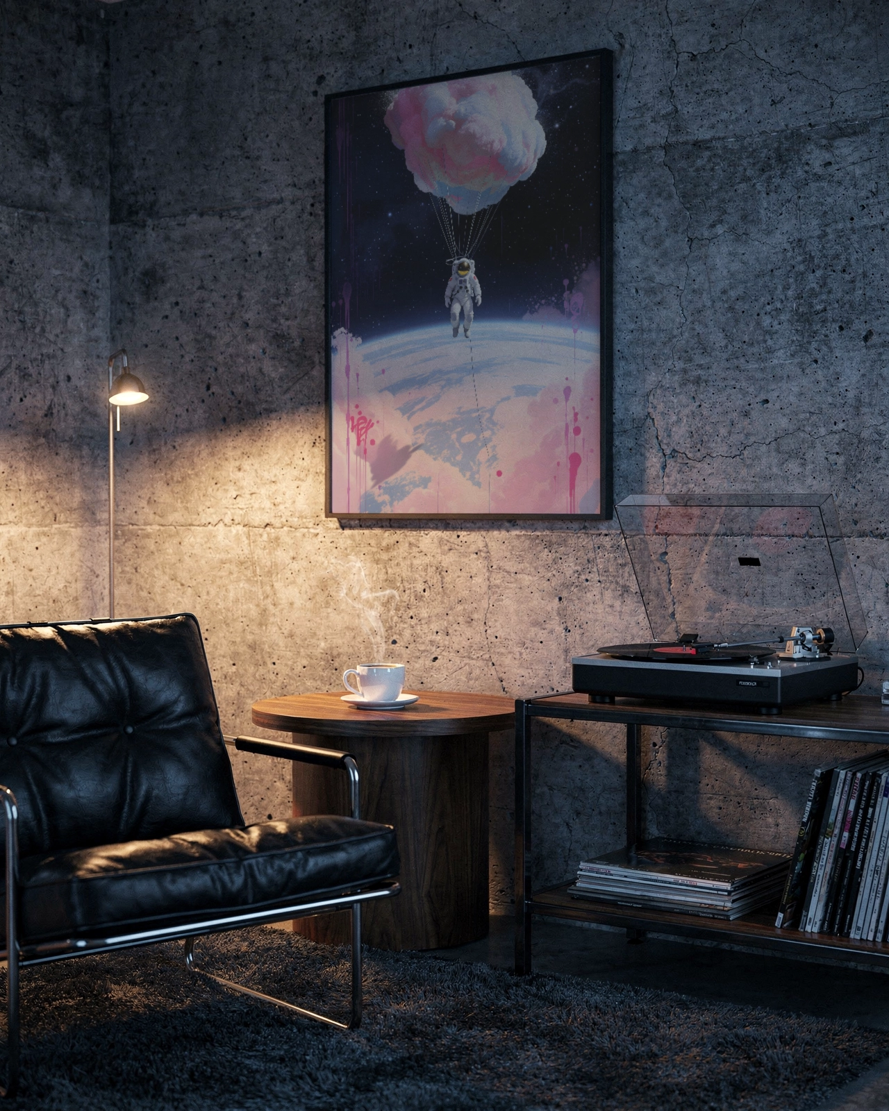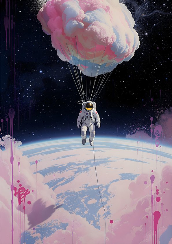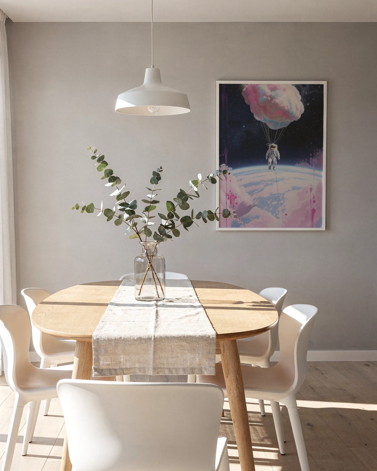 Son univers mêlant inspiration spatiale et atmosphère légère s’intègre parfaitement dans une décoration contemporaine, minimaliste ou design. Elle fonctionne particulièrement bien en grand format jusqu’au A0 pour un effet plus enveloppant sans surcharger la pièce. Une solution simple pour donner du caractère à votre intérieur et installer une ambiance inspirante au quotidien.
