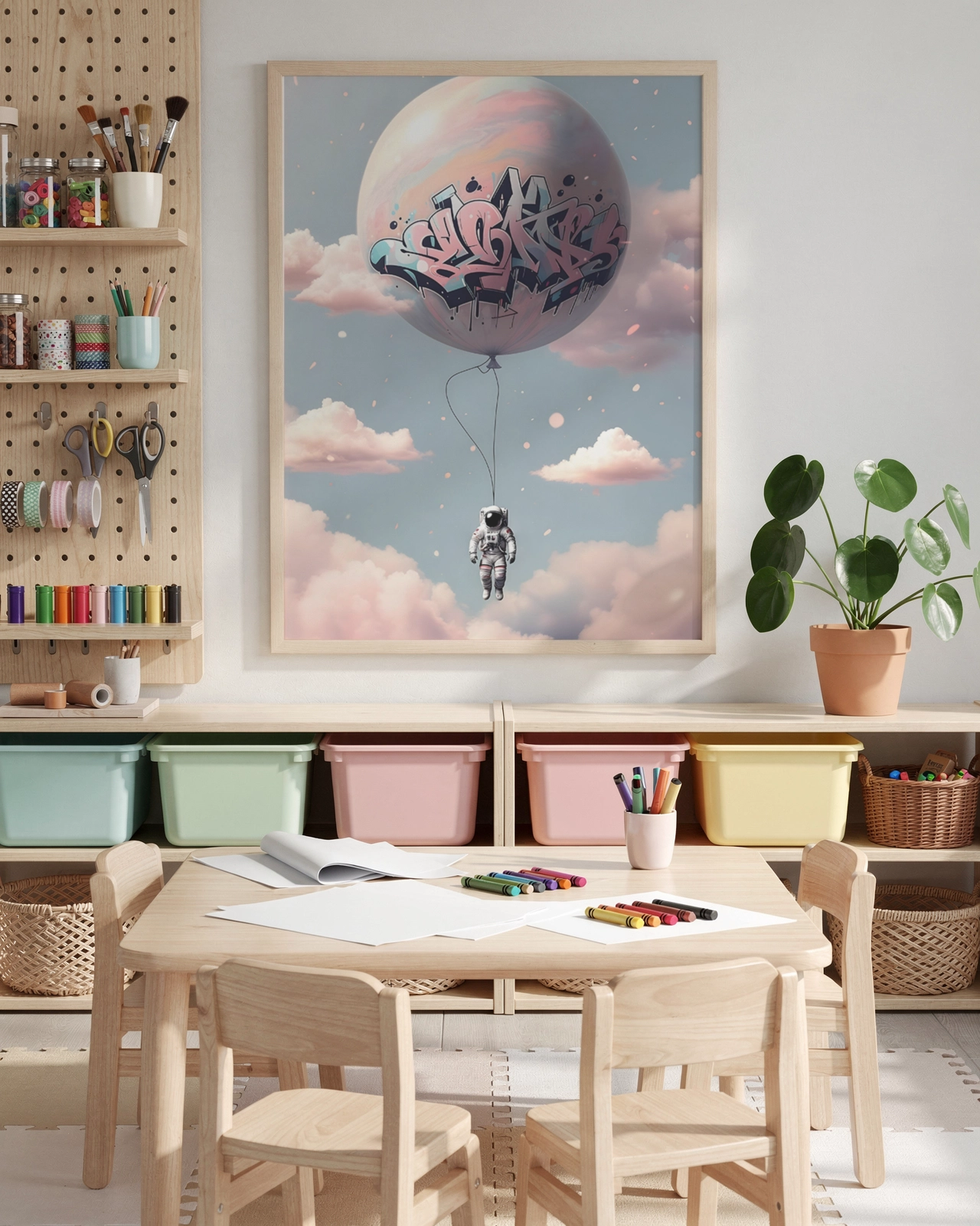 Son style street art associé à une atmosphère douce s’intègre facilement dans un intérieur contemporain, design ou minimaliste. Elle fonctionne aussi très bien en grand format jusqu’au A0 pour un effet visuel immersif sans surcharger l’espace. Une solution simple pour apporter du caractère et une touche créative à votre décoration.