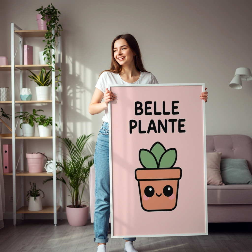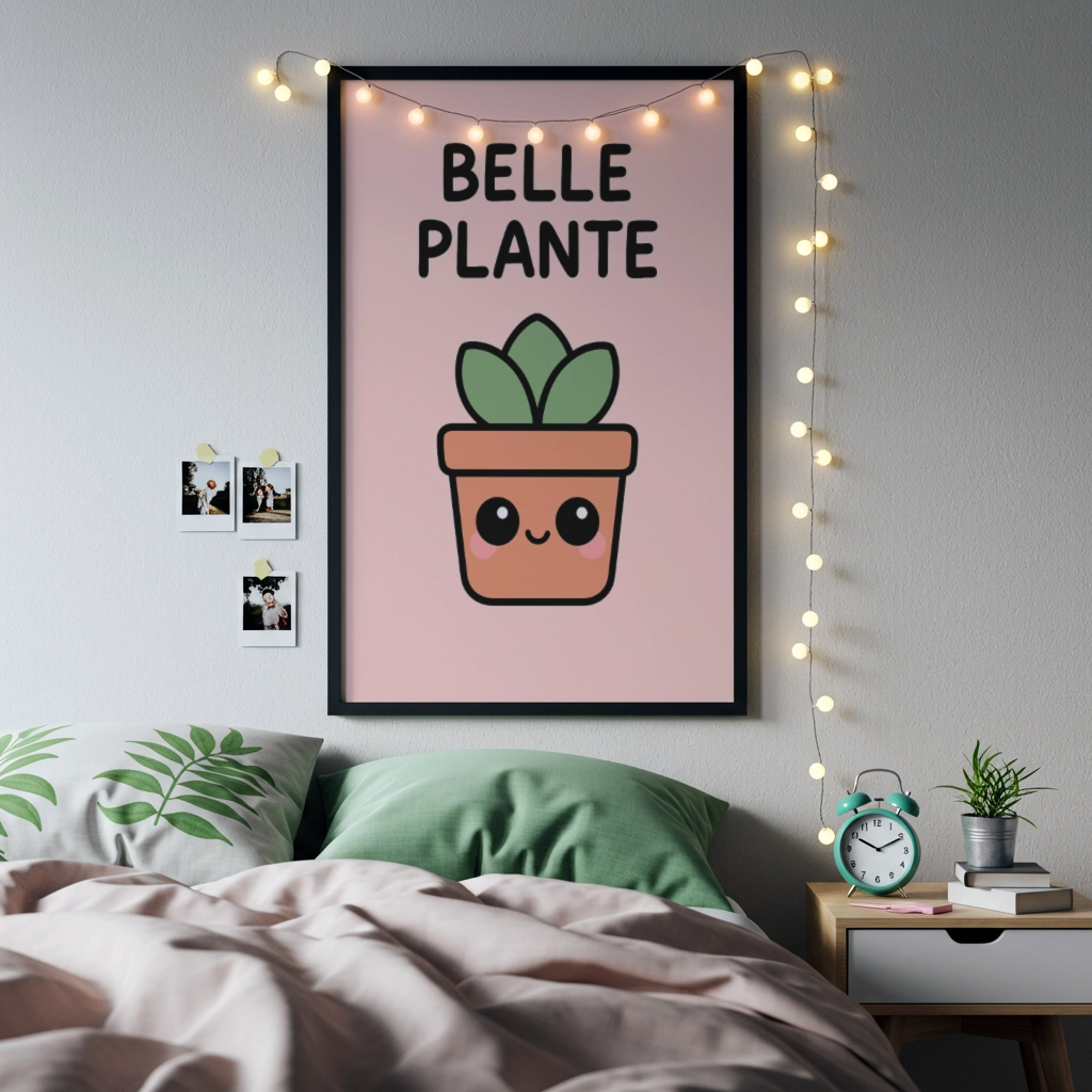 Le message « Belle plante » s’affiche avec légèreté, comme un compliment doux glissé au détour du quotidien.