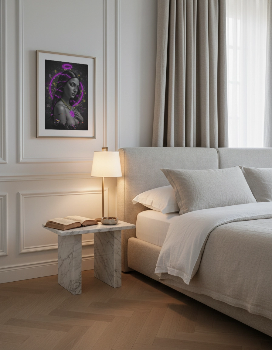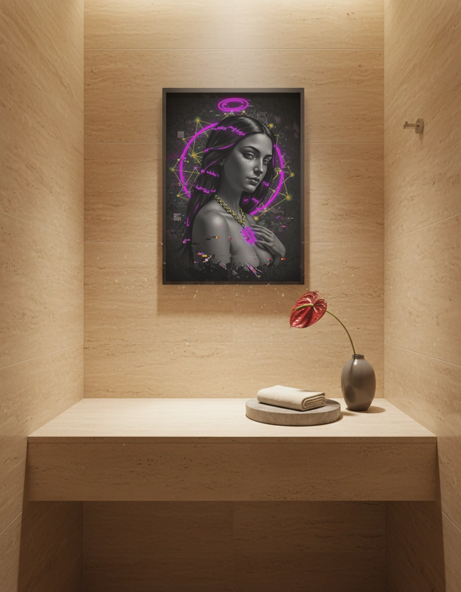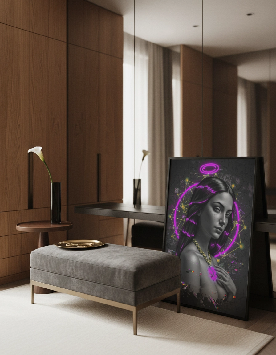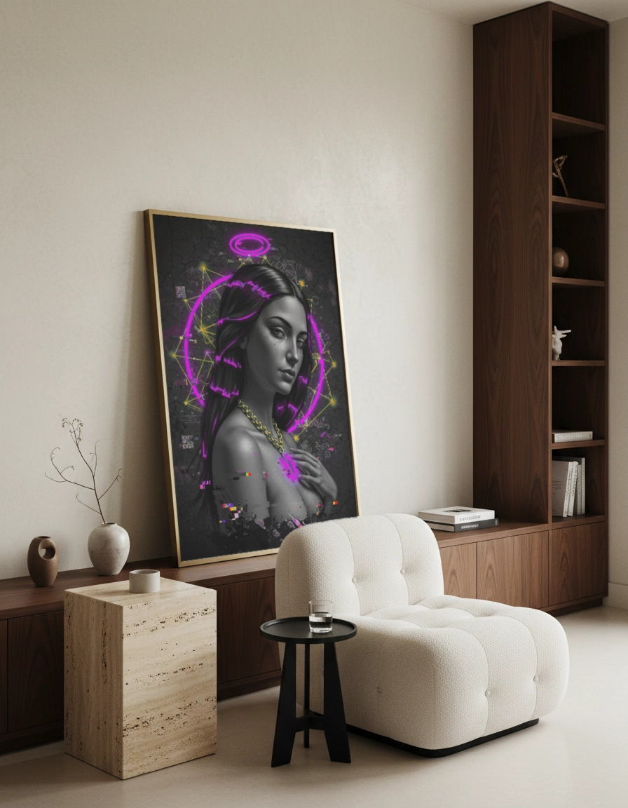 Son style street art aux accents néon s’intègre parfaitement dans une décoration moderne, industrielle ou design. Idéale en grand format jusqu’au A0 pour un impact visuel maximal, elle permet d’affirmer une identité audacieuse et actuelle.