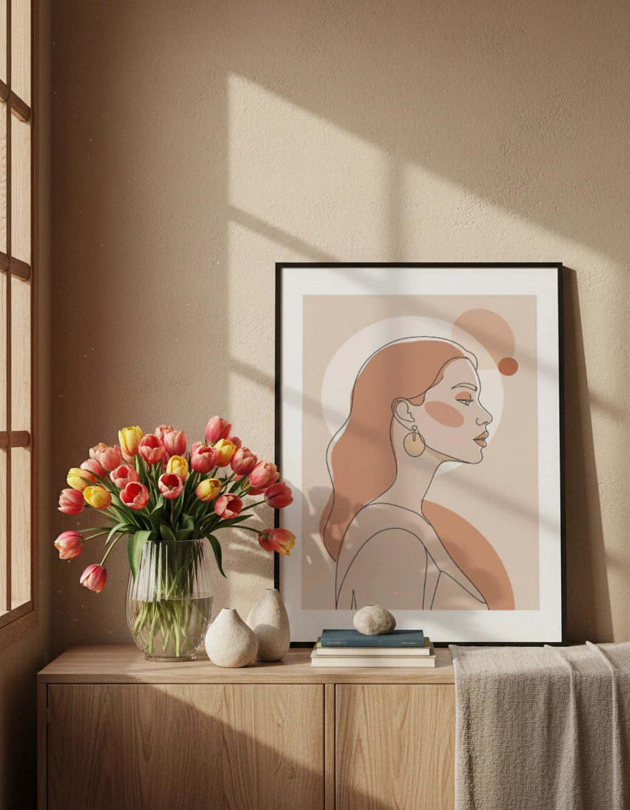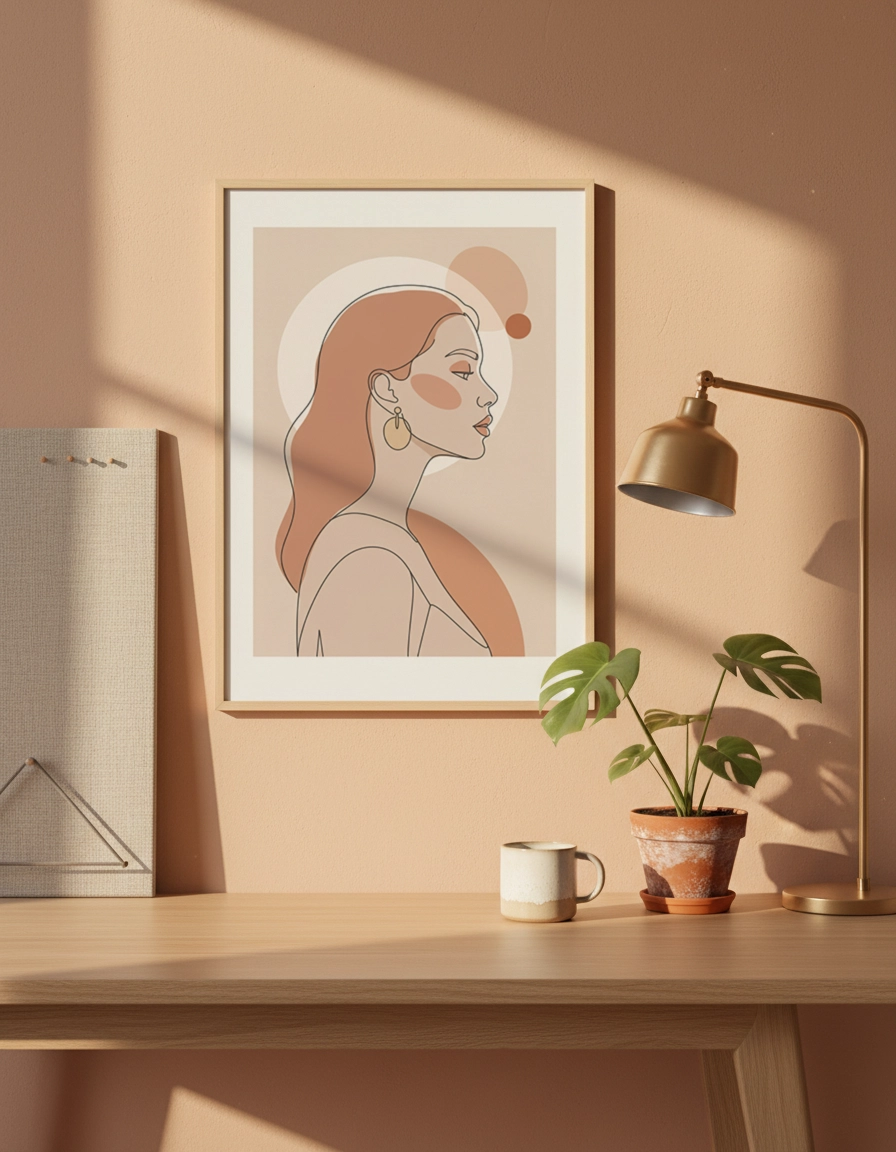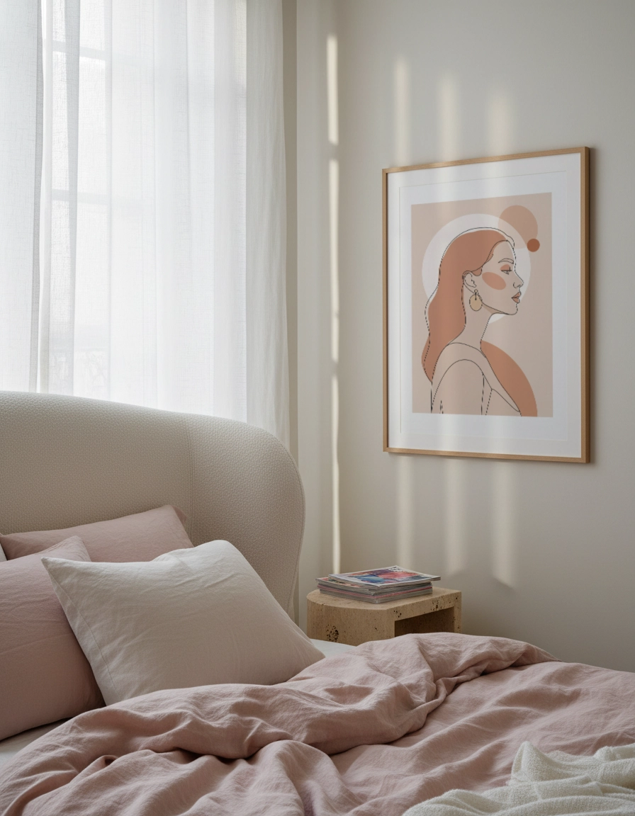 Dans un salon, une chambre ou un bureau, cette affiche apporte une ambiance douce et contemporaine. Elle habille un mur vide avec élégance et crée une atmosphère apaisante, idéale pour une décoration épurée et harmonieuse.
