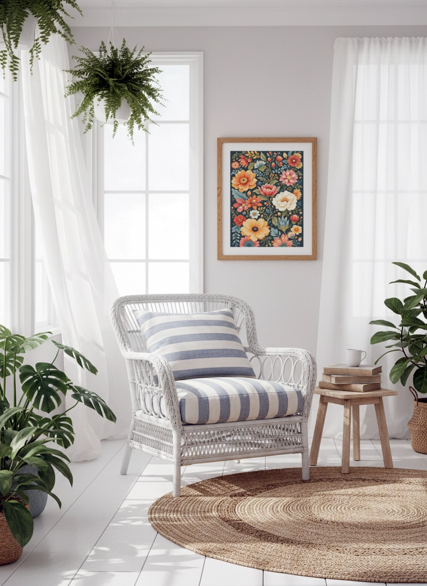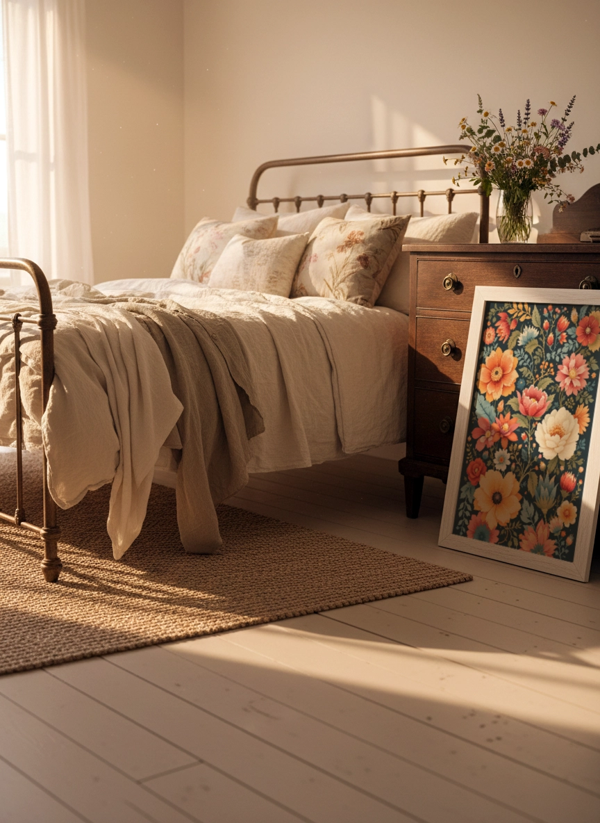 Cette affiche florale apporte une touche douce et facile à associer, du salon à la chambre.