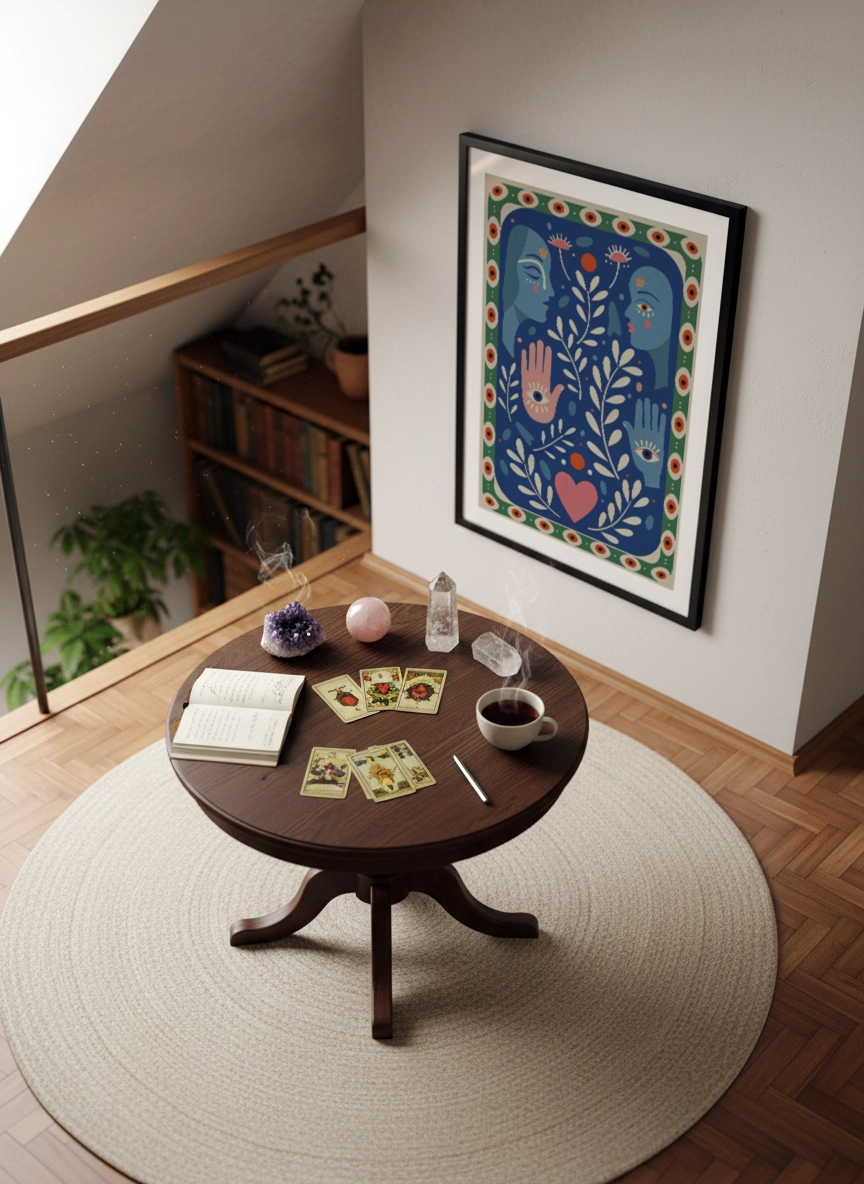 Pensée pour s’intégrer facilement dans différents intérieurs, cette affiche trouve sa place aussi bien dans un salon bohème, un café chaleureux, un espace de yoga ou un coin lecture apaisant. Ses couleurs équilibrées et sa composition harmonieuse apportent du caractère sans alourdir l’espace.