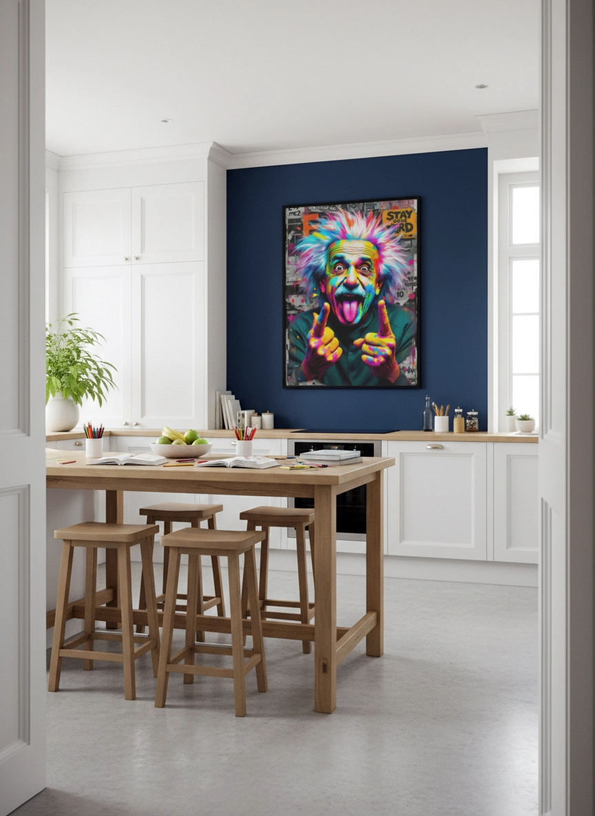 Un mur vide, et la pièce manque vite de caractère : cette affiche apporte une énergie fun et assumée.
