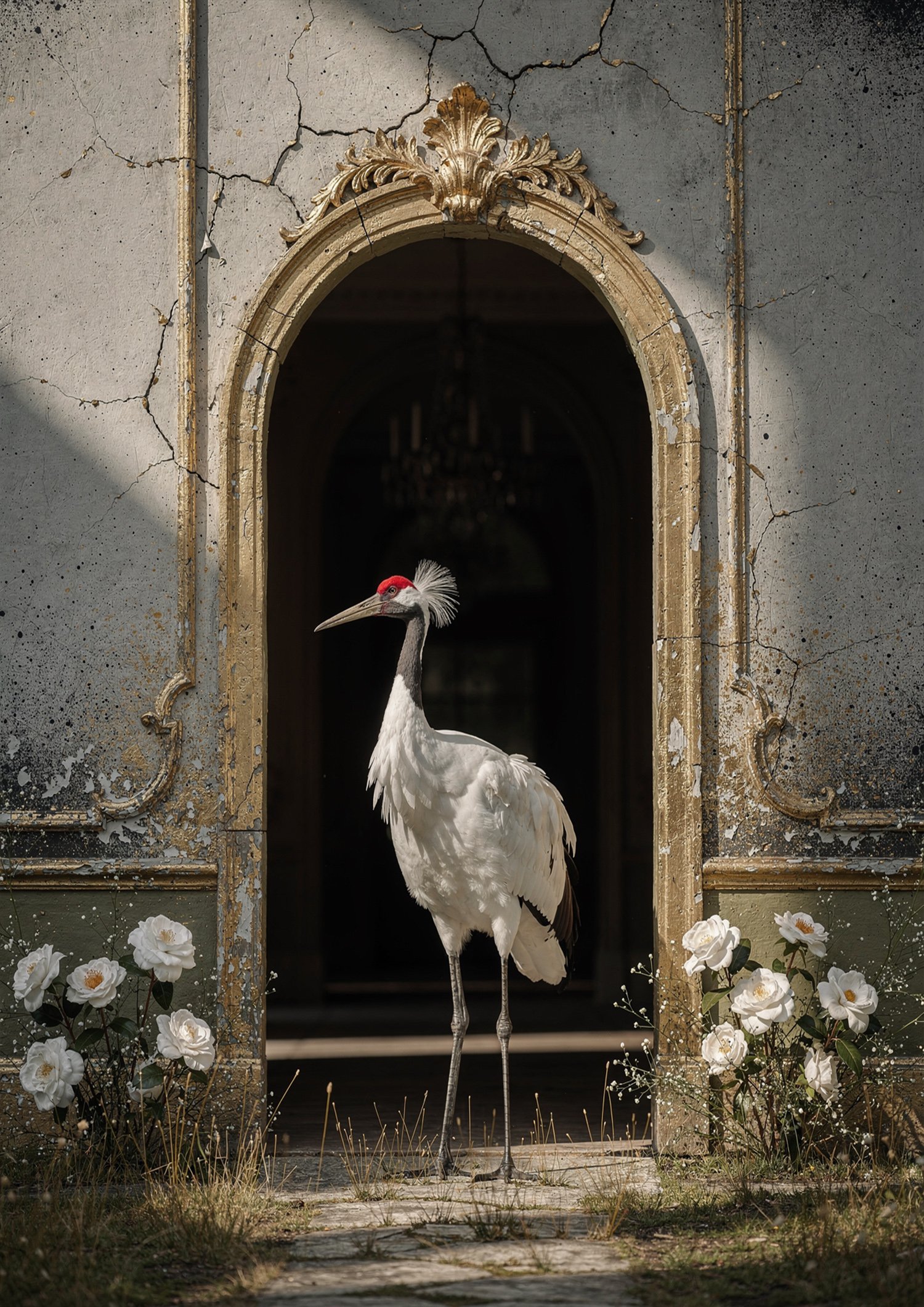 Affiche grue japonaise ambiance élégante pour entrée, salon ou bureau