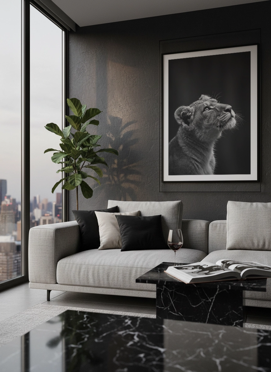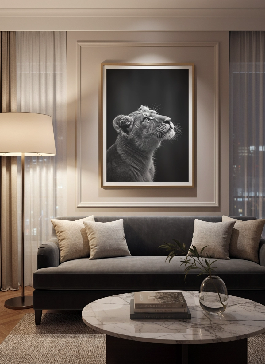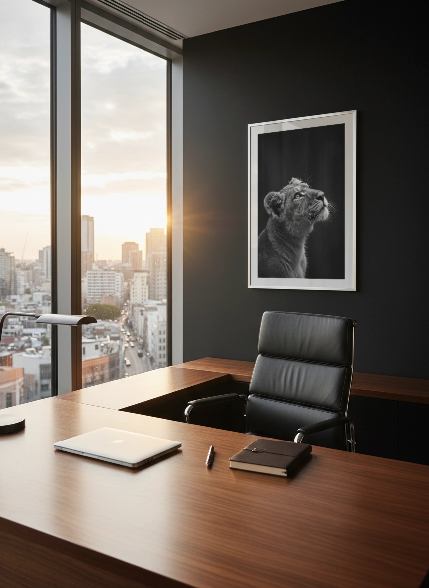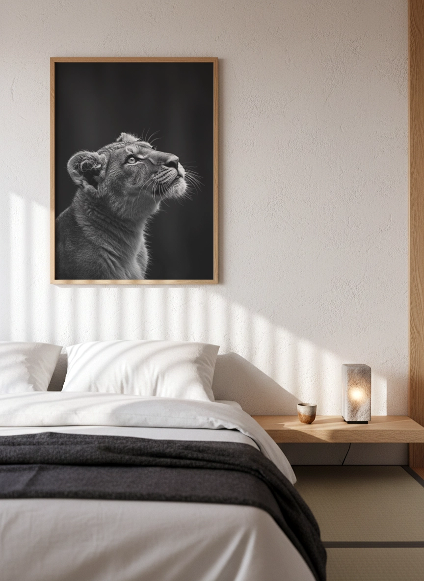 Dans un salon, un bureau ou une chambre, cette affiche apporte une ambiance forte et sophistiquée. Elle transforme un mur vide en point focal élégant et crée une atmosphère moderne, idéale pour une décoration épurée et affirmée.
