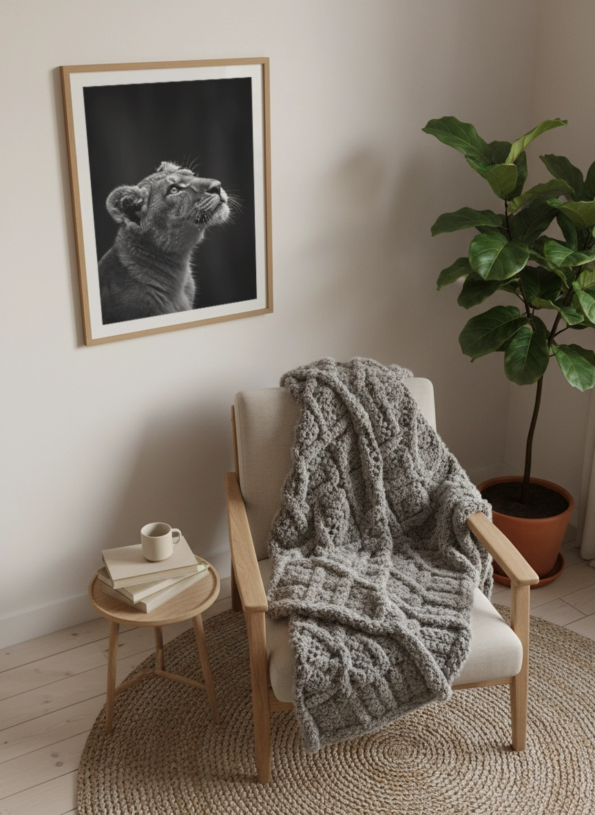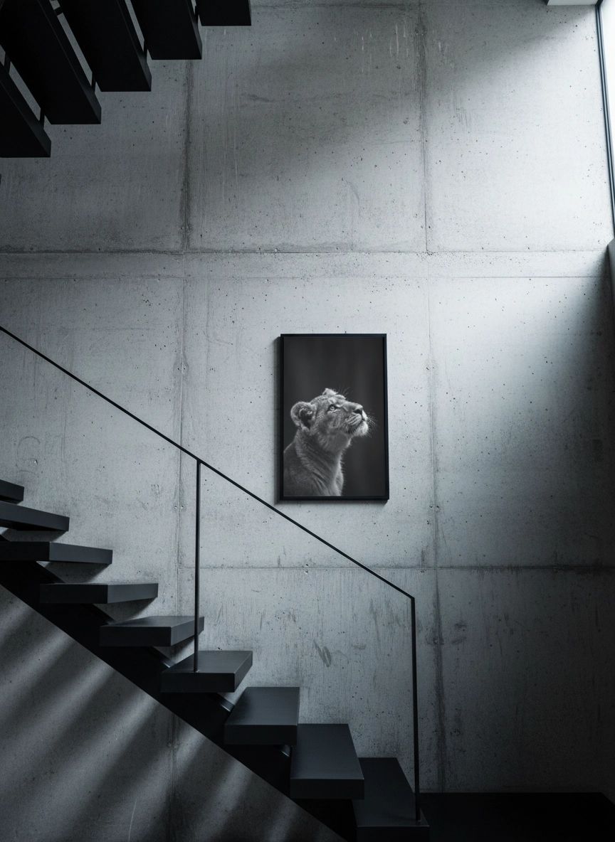 Son style noir et blanc s’intègre parfaitement dans un intérieur contemporain, minimaliste ou industriel. Elle fonctionne aussi bien seule qu’en composition murale et peut être choisie en grand format jusqu’au A0 pour un effet plus immersif. Une solution simple pour donner du caractère à votre espace.