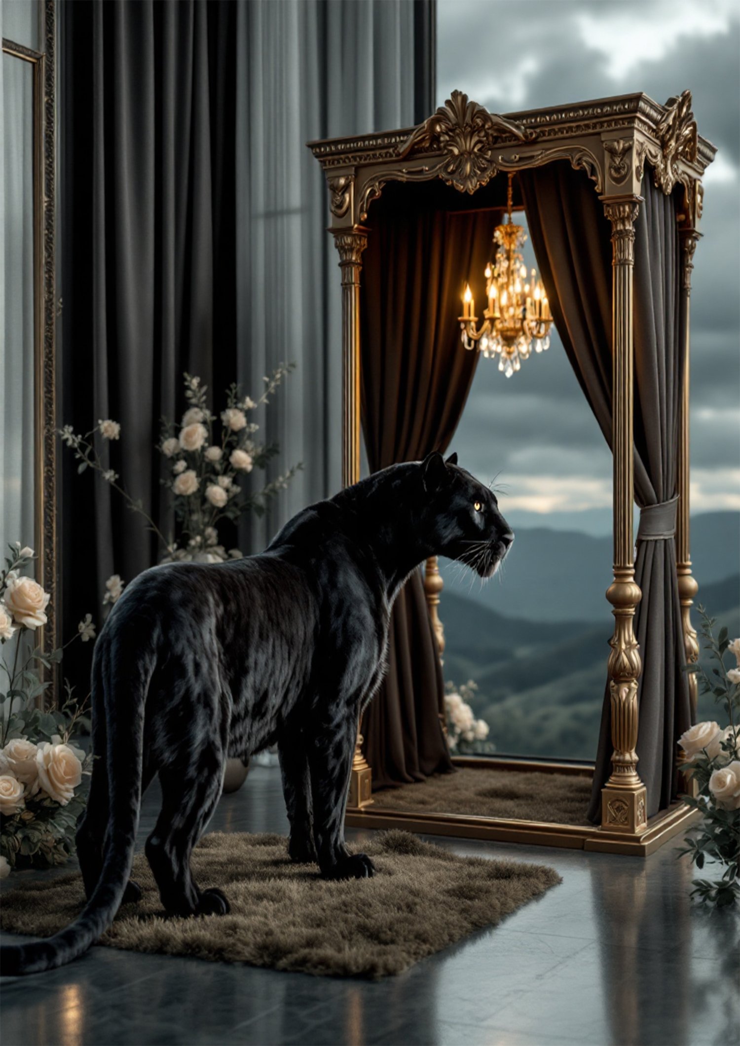 Affiche panthère noire ambiance luxe pour salon sophistiqué