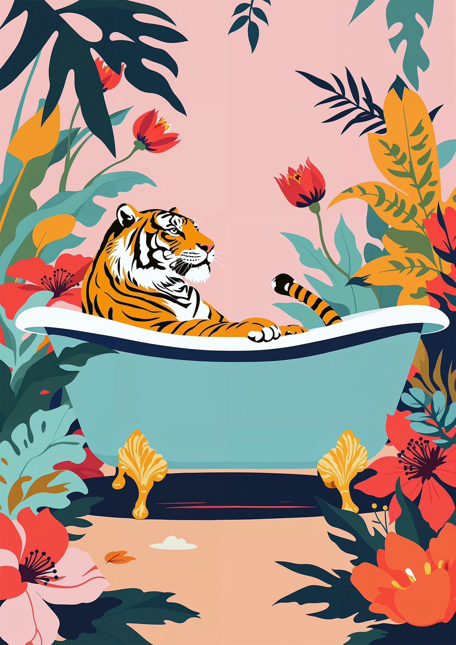 Affiche tigre ambiance tropicale décalée pour salle de bain ou salon